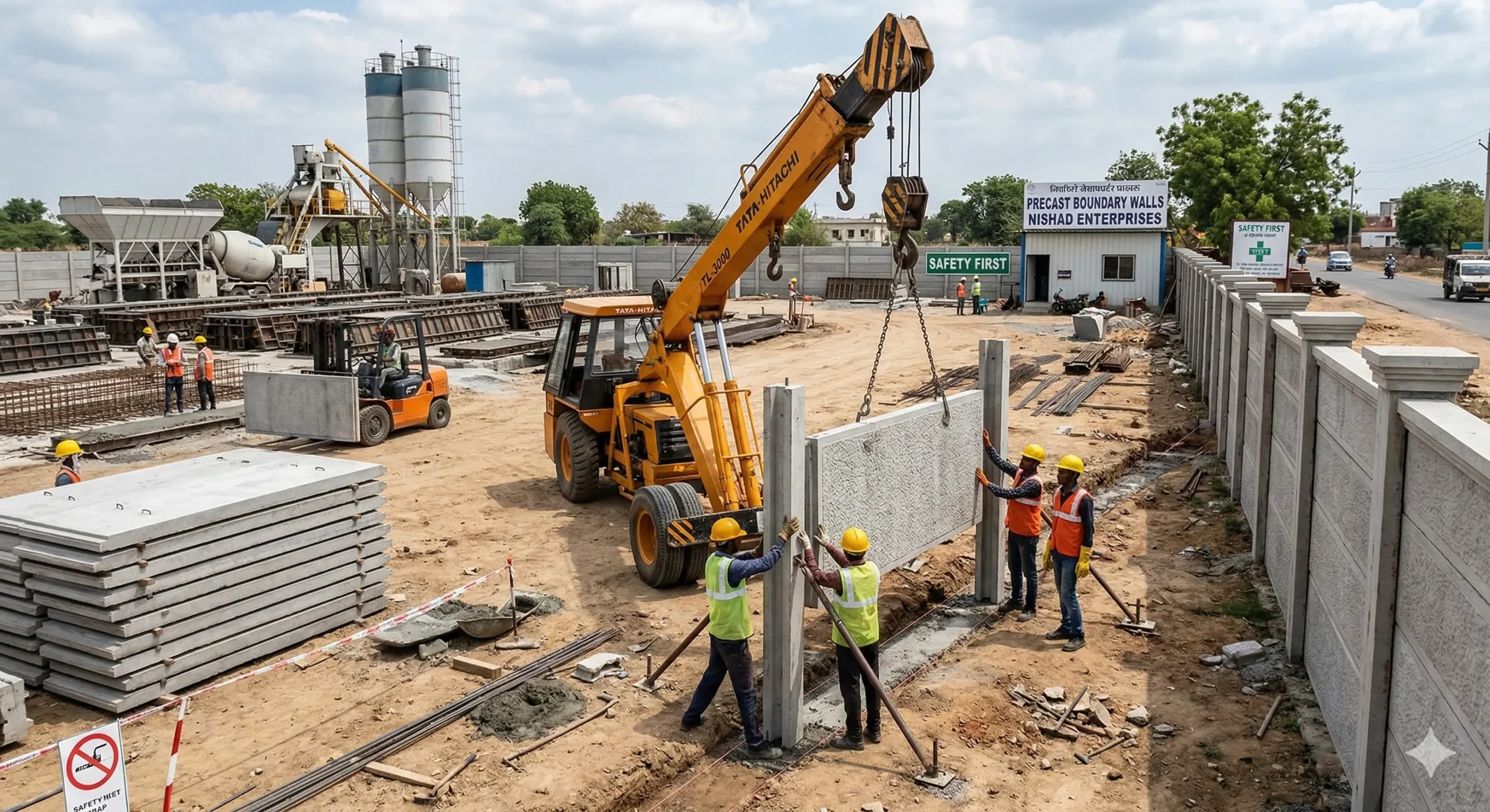 Expert support for boundary wall plant casting, erection, and installation.